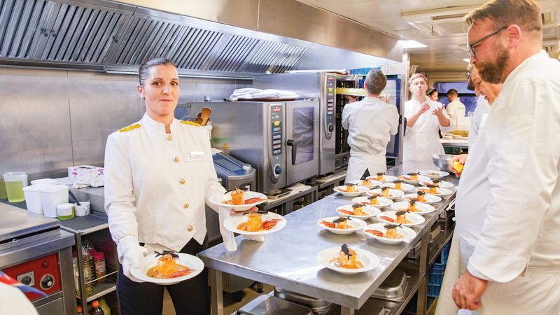 包含行政總廚 Alain Bohn、Martial Diffor 與副行政總廚 Christophe Kuhn,以深厚的法式料理底蘊,為整段航程定義餐桌高度。