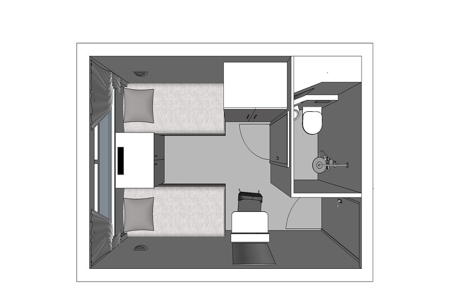 艙房皆設有對外窗景,採光自然,搭配簡潔設計與溫潤色調,營造安靜且放鬆的休息環境。