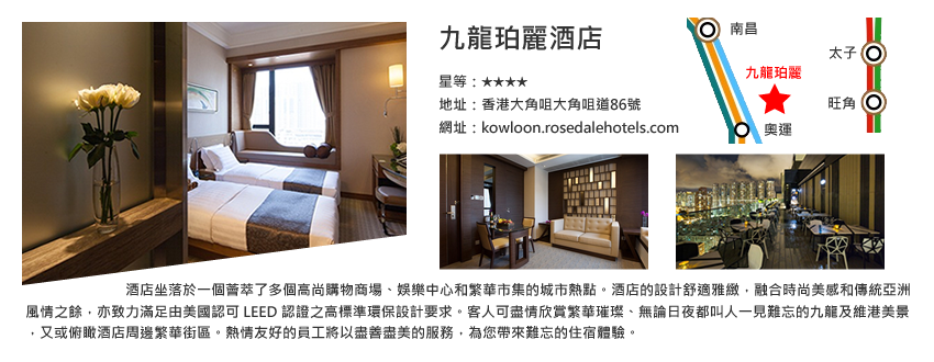 四星飯店 - 華麗、帝景、九龍珀麗 或同等級飯店