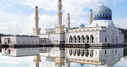 座落在Likas海灣的這座水上清真寺,是一座典型的當代伊斯蘭教建築,搶眼的白色建築本體及18K金打造的金色圓頂,花費RM2500萬建造,是馬來西亞最大、夕陽景觀最壯麗的回教堂之一,感覺有如浮在水面上的夢幻城市。