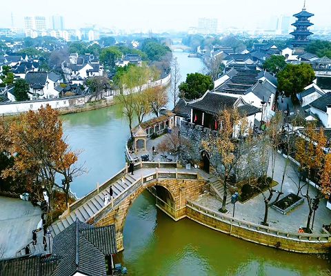【楓橋景區】位於蘇州,涵蓋寒山古寺、江楓古橋、鐵鈴古關、楓橋古鎮和古運河“五古”特色。楓橋舊名“封橋”,因漕運夜間封橋得名,後訛為“楓橋”,現橋為花崗石單孔半圓石拱橋。江村橋建于唐代,清康熙年間重建。楓橋古鎮保持粉牆黛瓦、石板街道的古樸風貌,兩條工藝古街交會於鐵鈴關,是遊客觀光、購物、休憩的好去處。