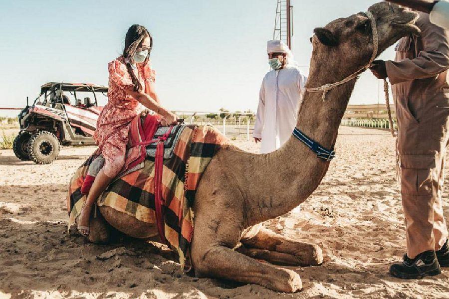 【沙漠衝沙+阿拉伯燒烤BBQ】(送騎駱駝)乘坐四驅吉普車穿越阿拉伯紅色沙丘,專業的衝沙司機帶您體驗沙漠狂飆,如同經歷電影中沙漠戰士的驚險場面。在廣闊無邊的沙漠中,盡情擁抱壯闊的日落,下車拍攝網美照記錄眼前沙漠的震撼景色。您可在沙漠上盡情玩耍,體驗一回獵鷹立在自己手臂上的威武感!(此體驗需自費)在夜幕低垂下,享用豐盛的阿拉伯自助晚餐和美味的燒烤佳餚。同時,觀看阿拉伯特色旋轉舞。營火晚會將是衝沙行程最後的精彩活動Dubai火焰。
