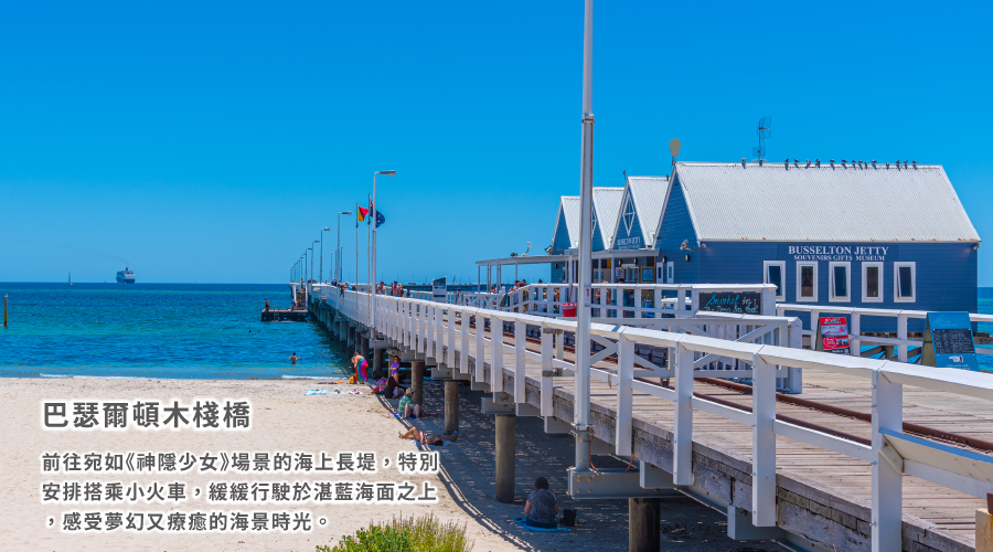【巴瑟爾頓Busselton JettyBusselton】是西澳大利亞州西南地區的一個城市,位於伯斯西南約220公里處,是著名電影《神隱少女》的取景地,有著南半球最長的木棧長堤(全長1.8KM),巴瑟爾頓作為西澳大利亞人的熱門度假勝地,歷史悠久,1972年關閉了巴瑟爾頓港口,並同時建立了附近的瑪格麗特河葡萄酒產區,使旅遊業成為投資和發展的主要來源,輔之以服務業和零售業。