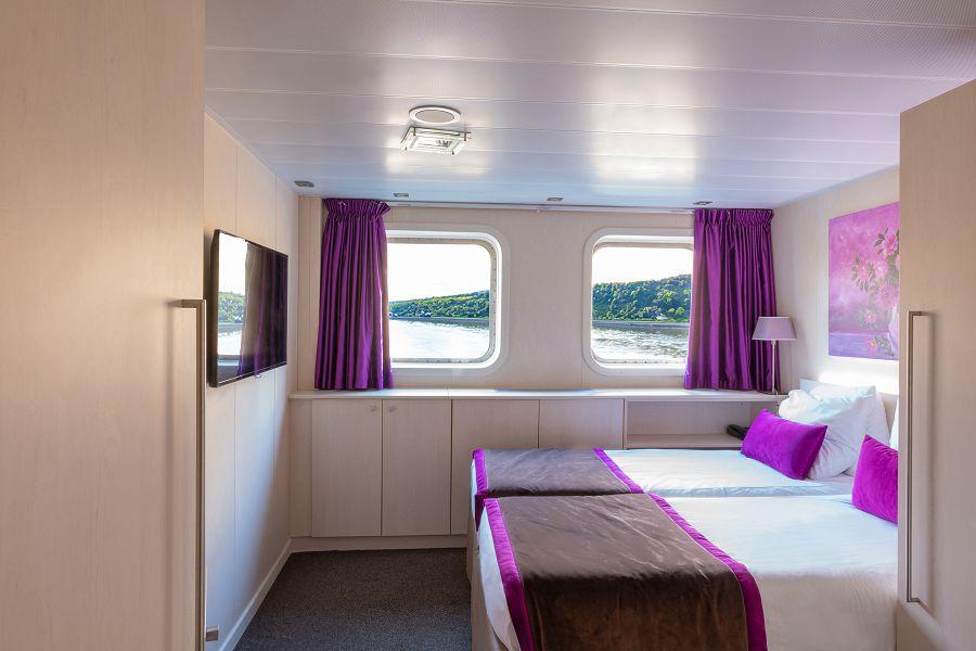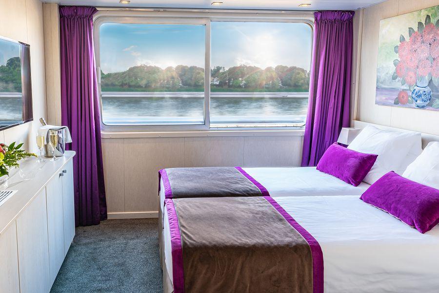 午後前往登上豪華萊茵河河輪——「施密特號」,展開悠閒浪漫的河上旅程,在舒適優雅的船艙中緩緩感受萊茵河的靜謐風光,傍晚於船上享用精緻晚餐,沉浸於歐洲河岸的迷人氛圍之中。