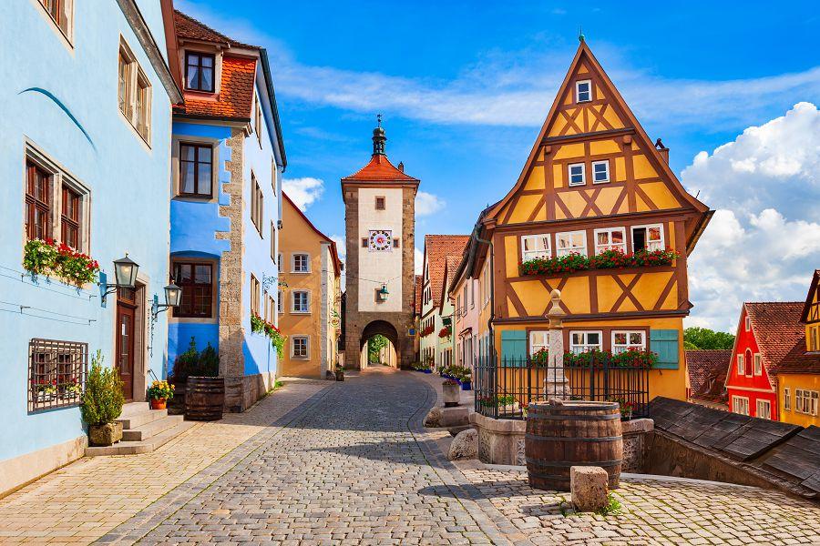 【羅騰堡Rothenburg】是保存最完整的中世紀古城之一,城牆環繞、石板街道與木造屋交織出濃厚的歷史氛圍,彷彿時光停留在數百年前,漫步於舊城區可見市政廳、廣場與塔樓等經典景致,其中以童話般的街景與浪漫氣息聞名,長年被譽為德國最具代表性的夢幻小鎮之一。