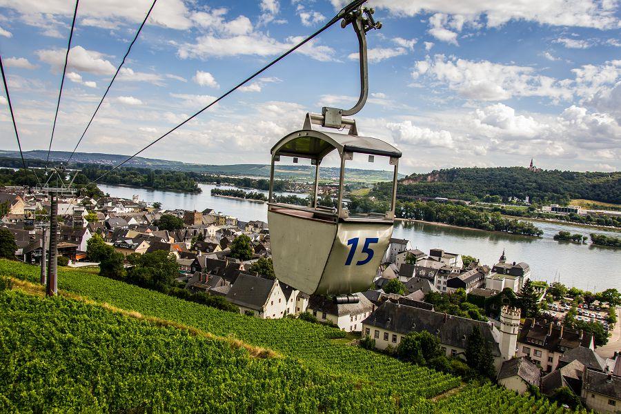 抵達呂德斯海姆市中心後,前往纜車搭乘站,搭乘★纜車登上尼德瓦爾德紀念碑,俯瞰小鎮、葡萄園與萊茵河交織而成的壯麗景致。隨後沿著葡萄園步道漫步前往聖希爾德加德修道院,這座修道院建於1900至1904年間,靜謐而莊嚴。參觀修道院後,沿著葡萄園步道步行返回碼頭,在自然與酒鄉風光中畫下悠閒旅程的句點。