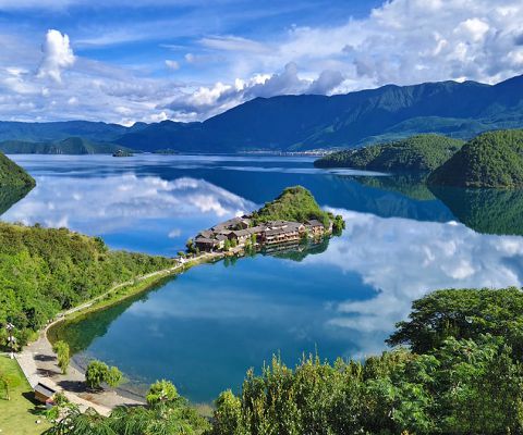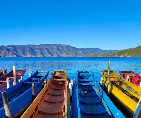 【瀘沽湖】位於四川與雲南交界,屬長江上游金沙江支流雅礱江水系,是中國著名的高原淡水湖之一。湖泊面積約50平方公里,平均水深約40公尺,湖水清澈見底,景色純淨靜謐,被譽為「高原明珠」。湖區四周群山環繞,湖光山色相互映襯,隨著季節更迭展現不同風貌;每年5月至10月,湖面盛開潔白的「水性楊花」,點綴於碧藍湖水之上,景致夢幻迷人,是瀘沽湖最具代表性的自然景觀之一。湖畔世居的摩梭人,至今仍保留著獨特的母系社會制度和“男不娶、女不嫁"的走婚習俗,形成與眾不同的人文風情,也讓它被稱為「東方女兒國」,充滿神秘與浪漫色彩。結合壯麗的高原自然景觀與獨特民族文化,瀘沽湖不僅是一處風景勝地,更是一段深入人文與歷史的旅遊體驗,是造訪西南不可錯過的經典景點。