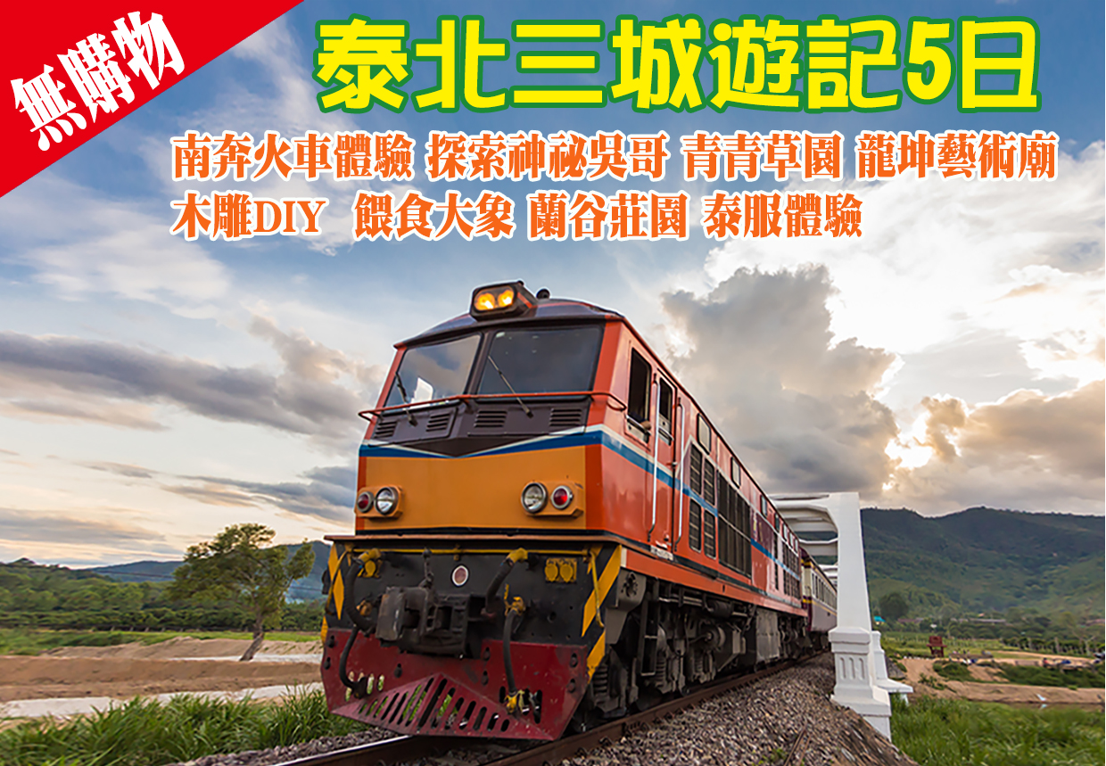 | 第 三 天 清邁→南奔火車體驗: 乘坐泰國特色火車前往南奔府→探訪南奔神秘吳哥建築文化(每人一杯特調咖啡)→南奔 聖帕楊鑾寺Wat San Pa Yang Luang→木雕藝術村+DIY木雕 “12生肖”彩繪→蘭娜古城之旅: 建都三王紀念像+大塔寺+水果街 |